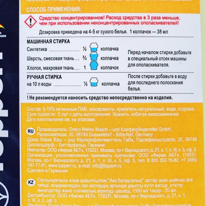 Кондиционер для белья Topperr Морозная свежесть, концентрат, 1500 мл .