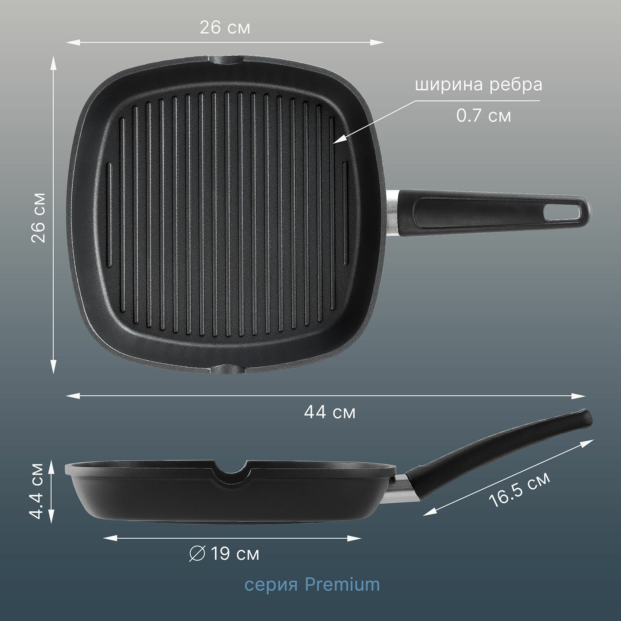 СохранитьСковорода гриль с антипригарным покрытием, Tescoma Premium 26х26 см интересное: