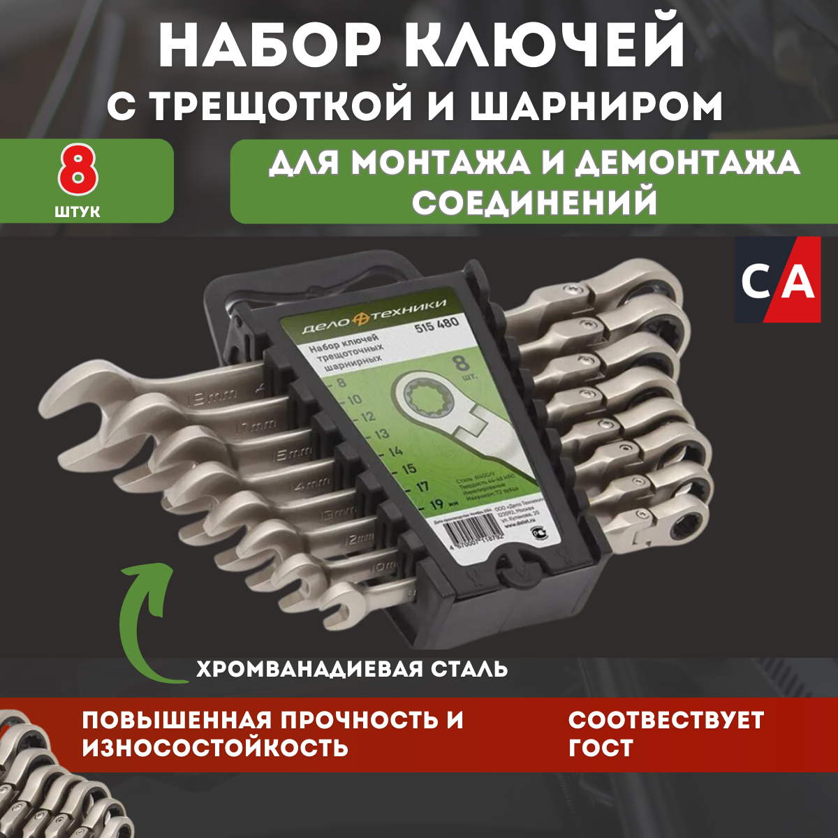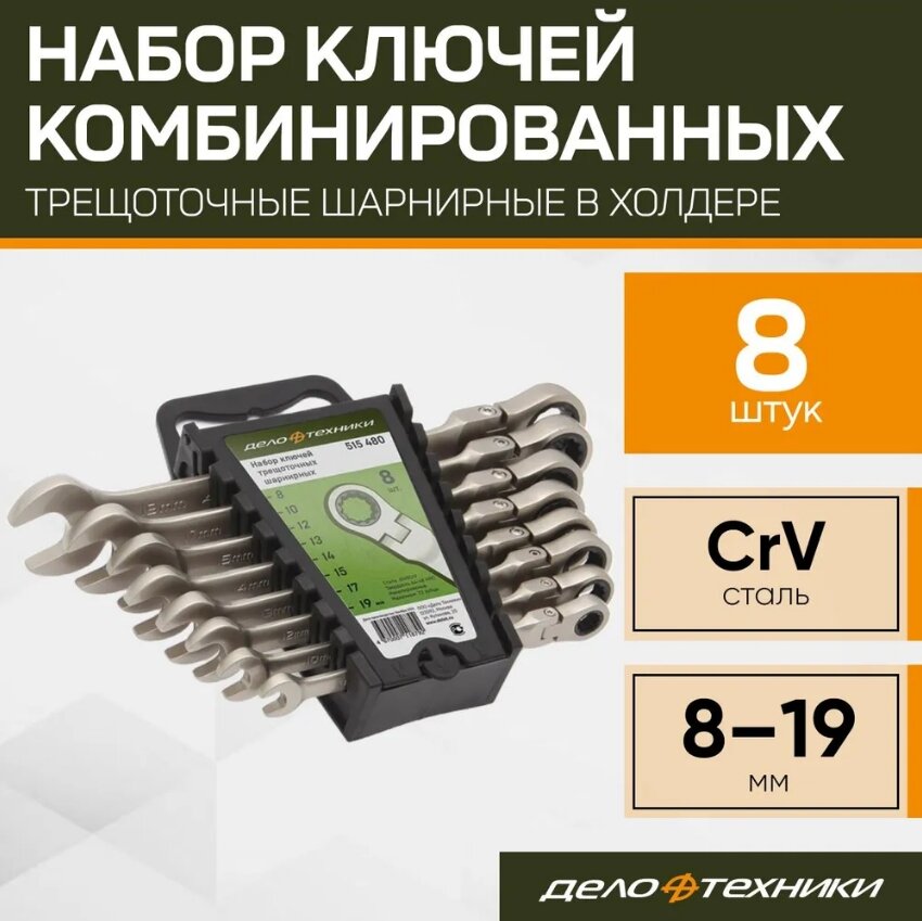 Набор Ключей Комбинированных Трещоточных Шарнирных 8 Шт. Дело Техники 515480 Дело Техники арт. 515480