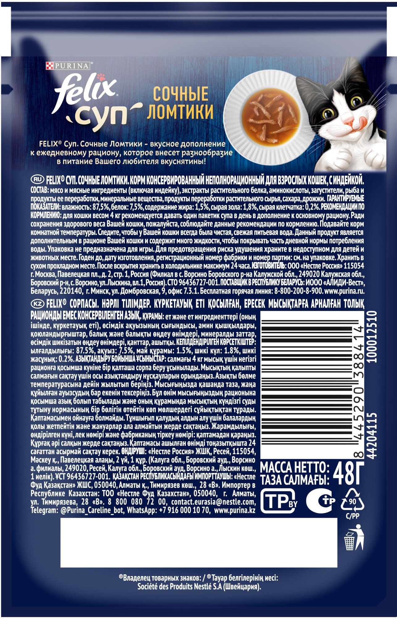 Купить Влажный корм Felix суп для кошек индейка сочные ломтики 48г