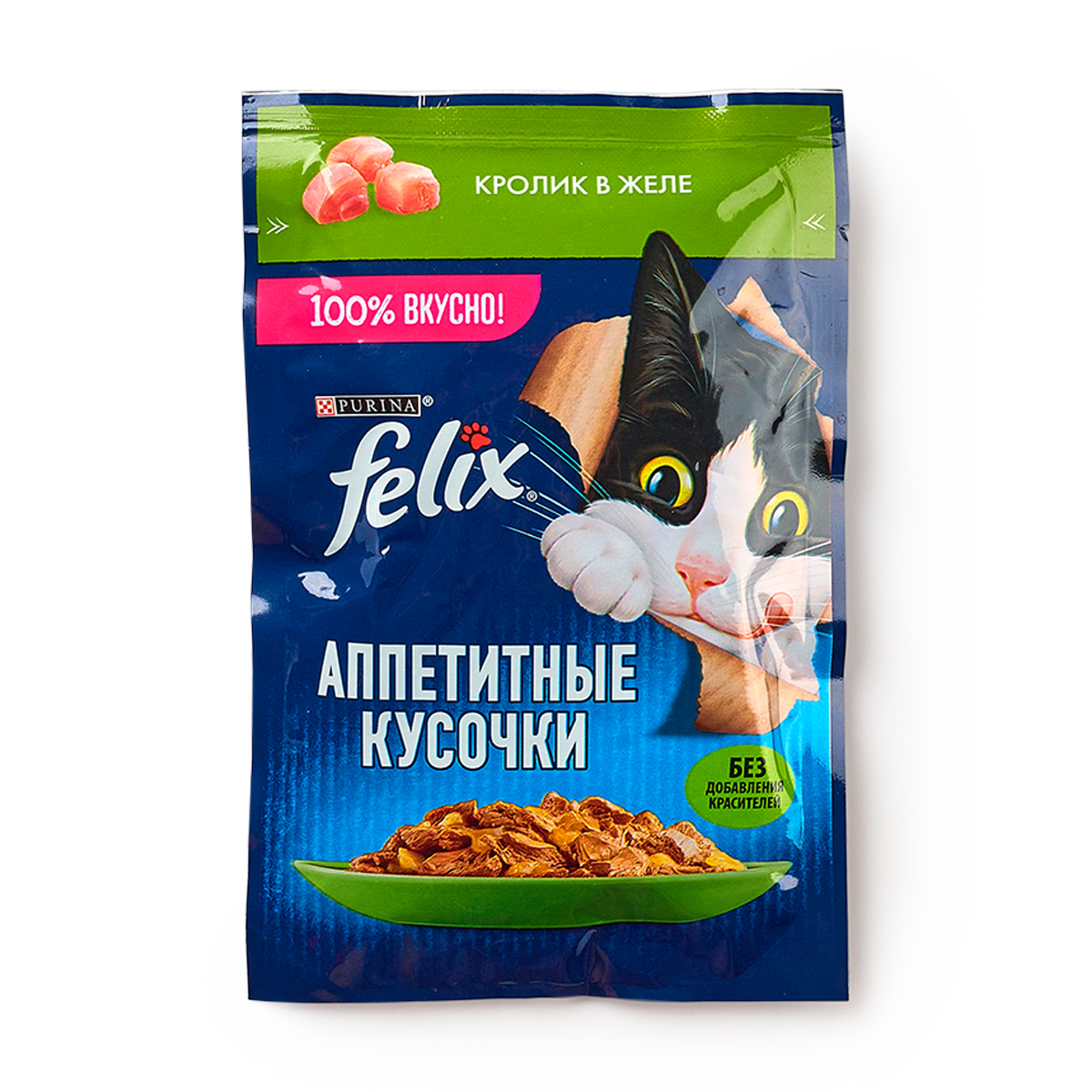 Купить Влажный корм Felix аппетитные кусочки для кошек кролик в желе 75г