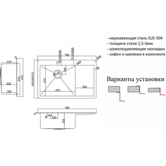 СохранитьМойка для кухни ZorG HD 7851-R GRAFIT, нержавеющая сталь графит 1,5 мм, чаша справа крыло слева, премиум, с сифоном интересное: