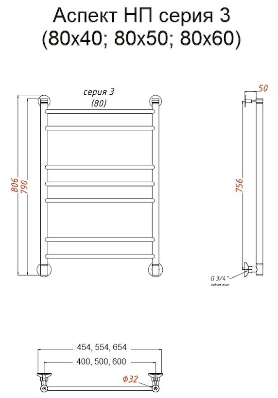 Тругор Полотенцесушитель водяной Тругор Аспект НП 3 80х50 (ЛЦ6)
