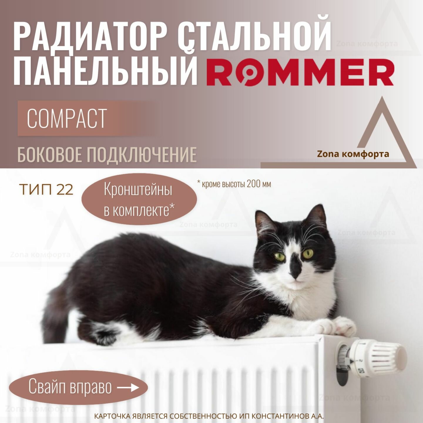 ROMMER 22/300/400 радиатор стальной панельный боковое подключение Compact