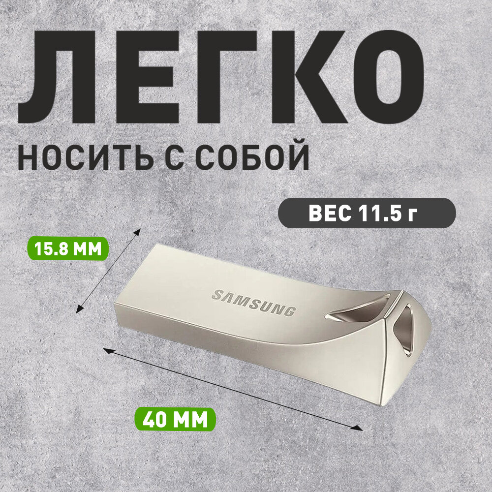 Купить Флешка Samsung BAR Plus 128 ГБ, 1 шт., серебряное шампанское