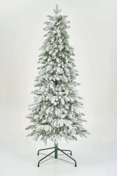 Искусственная ель беверли стройная, 210 см, заснеженная, хвоя 100% литая, царь елка БВР/СТР-ЗСНЖ-210