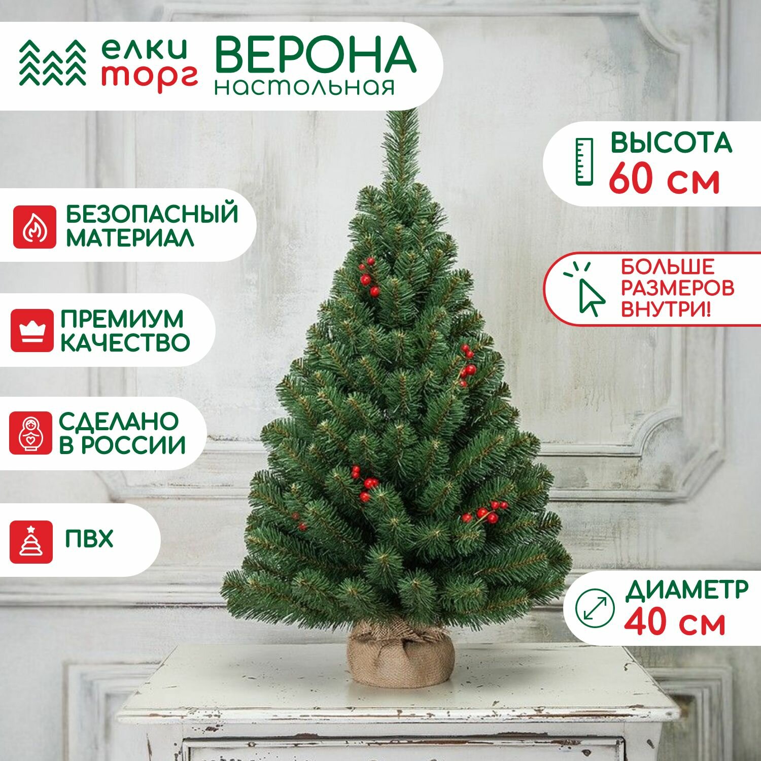 Купить Ель настольная Верона 60 см. с ягодками, ПВХ, ЕлкиТорг