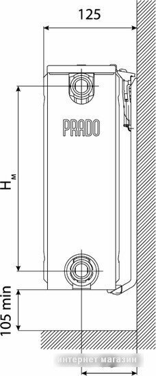 Радиатор стальной PRADO Universal 22/500/900 1956 Вт нижнее/боковое подключение (+2 кронштейна)