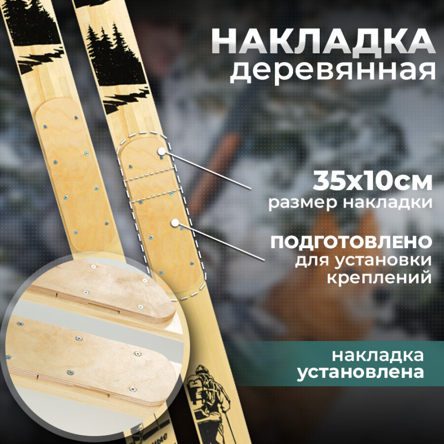 Лыжи охотничьи деревянные Маяк Лесные 175 х 11 см с накладками