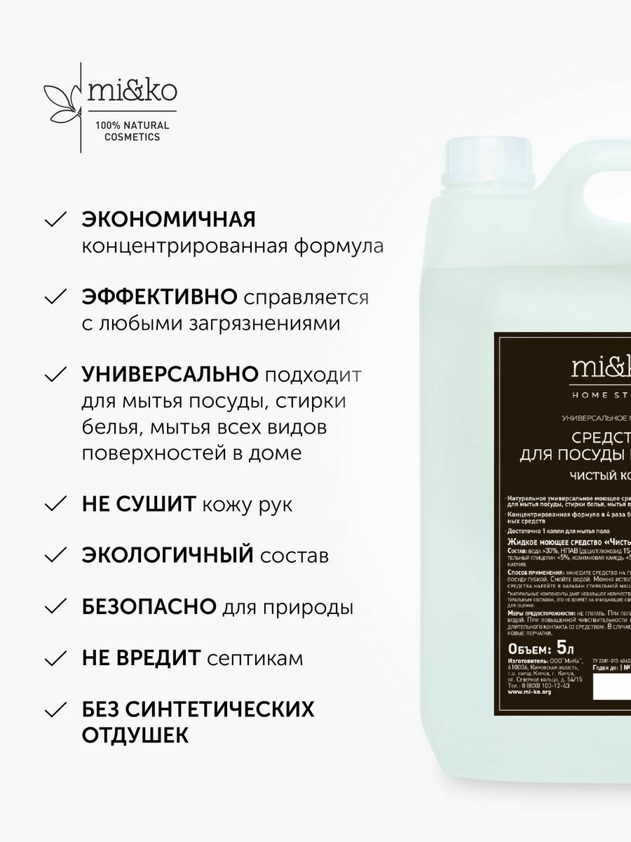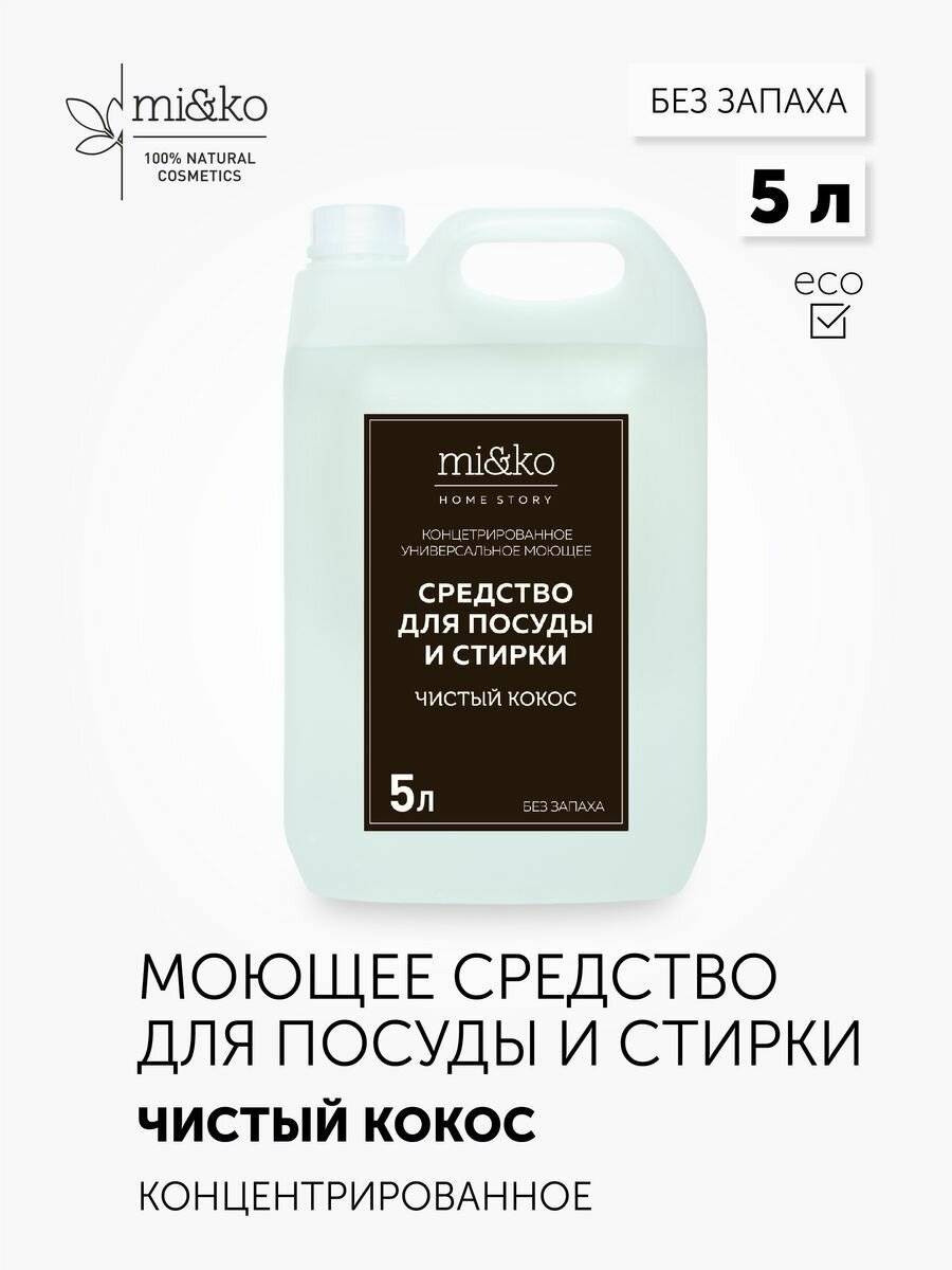 Моющее средство mi&ko для посуды и стирки Чистый кокос 5 л