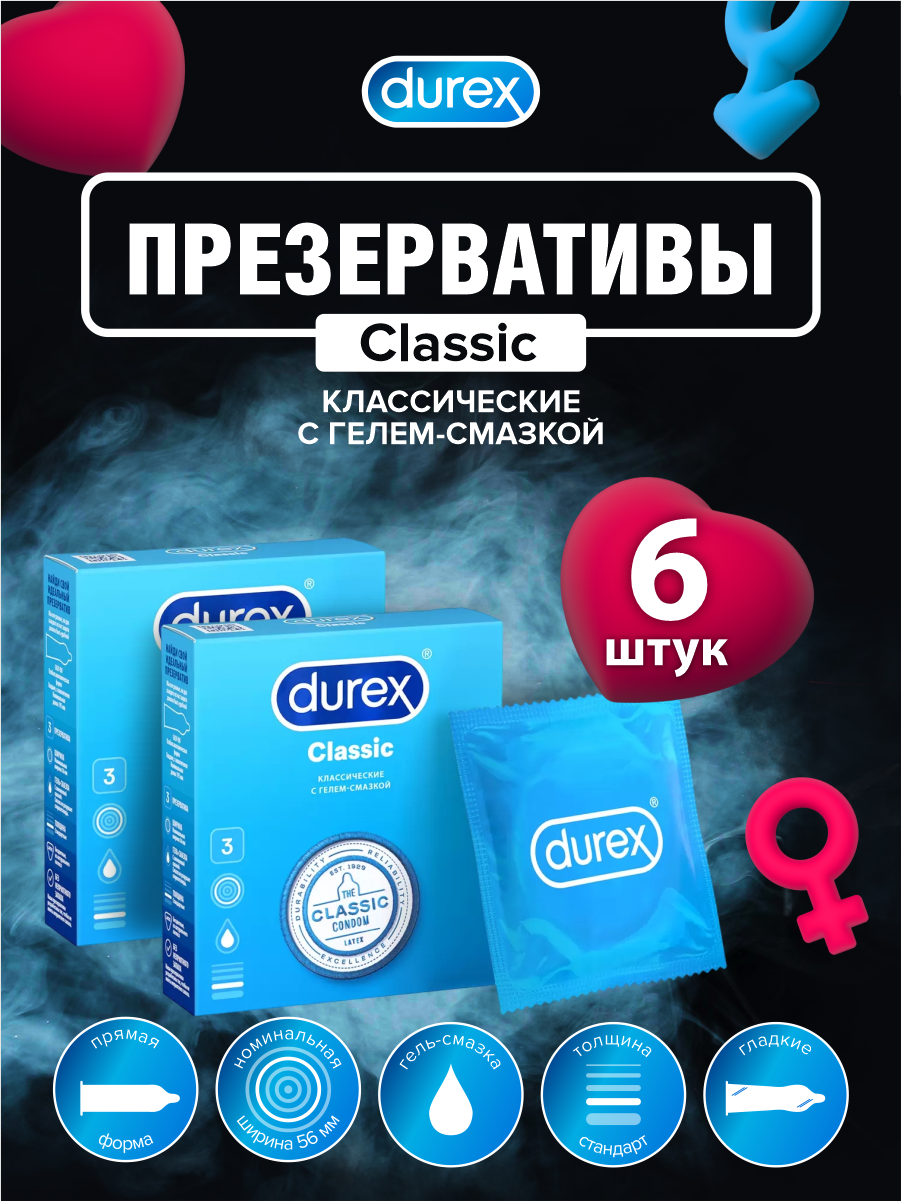 Купить Durex презервативы Classic классические с гелем-смазкой 3шт