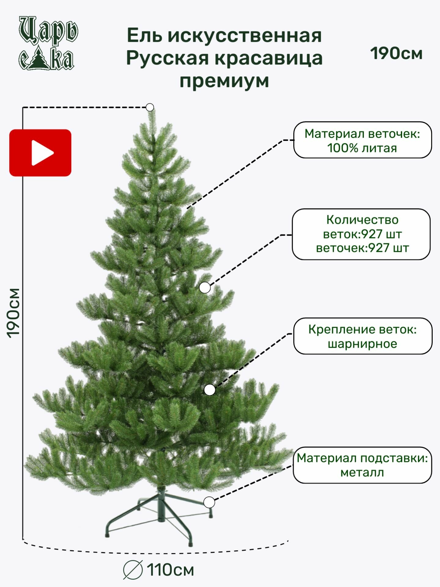 | Отзыв: | Ель искусственная Царь Елка Русская Красавица имеет два варианта исполнения. Это просто Русская красавица, когда литые иголки имеют только половина каждой ветки. И Русская красавица премиум. Это 100% литая хвоя. |