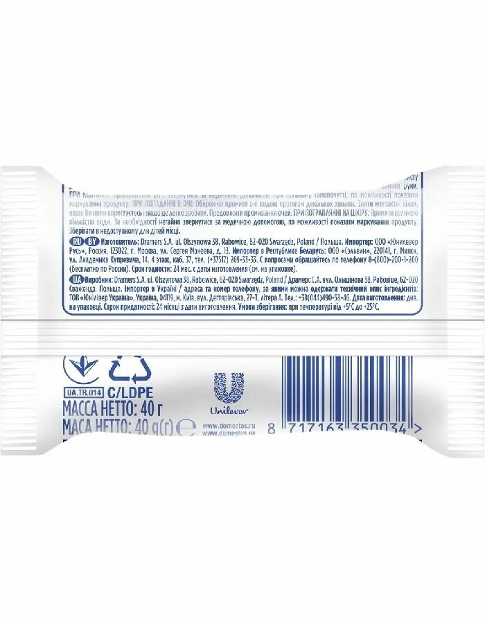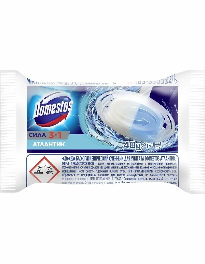 Гигиенический блок для унитаза Domestos "Атлантик", твердый, сменный блок, 40г (8717163350034)