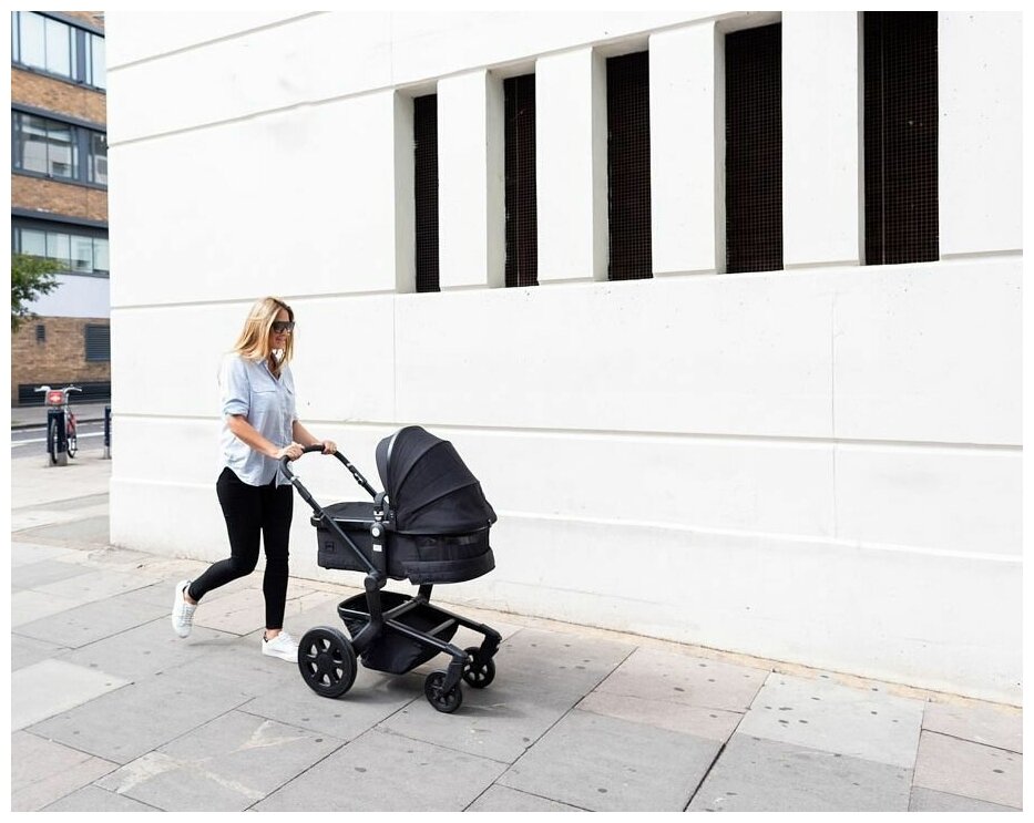 Процесс установки переносной люльки занимает много времени. Сиденье просторное и мягкое, ремни регулируются легко, но они могут расстегнуться в процессе эксплуатации. Спинка кресла легко опускается, а вот поднять ее сложнее, особенно когда ребенок находится в коляске. Положение подножки можно также отрегулировать без особых усилий одной рукой. Корзина для хранения большая, доступ к ней не ограничивается даже при разложенной спинке. Педаль тормоза большая и удобная, к тому же тормоза хорошо удерживают коляску на месте. Коляску удобно катать как по тротуару, так и по неровным поверхностям, по траве и даже по песку. Но при езде, например, по бездорожью вам придется приложить чуть больше усилий. Складывать коляску придется двумя руками, к тому же даже в сложенном виде она будет занимать довольно много места, поэтому, если вы планируете часто ездить с коляской в общественном транспорте, вам будет неудобно. |
