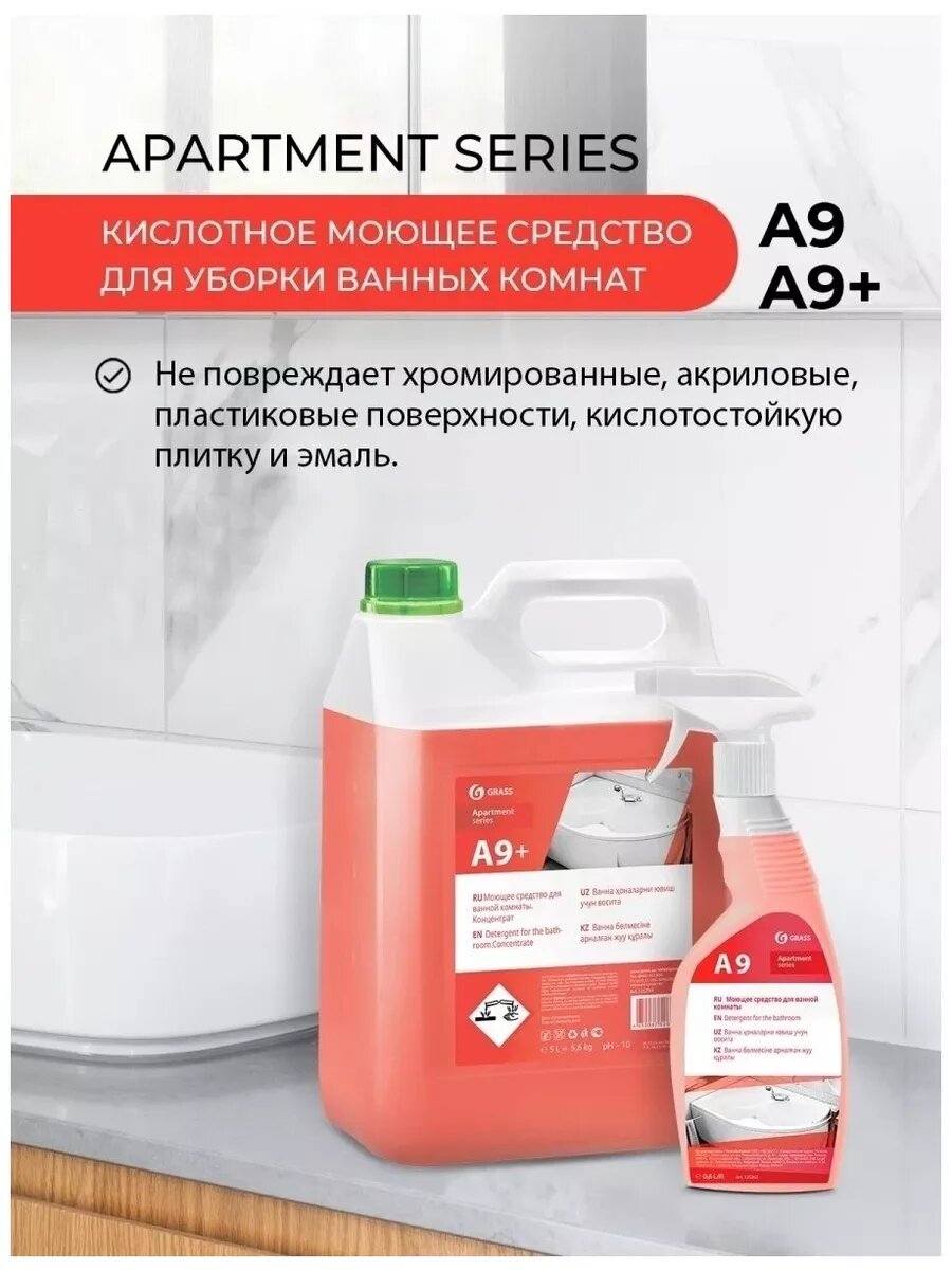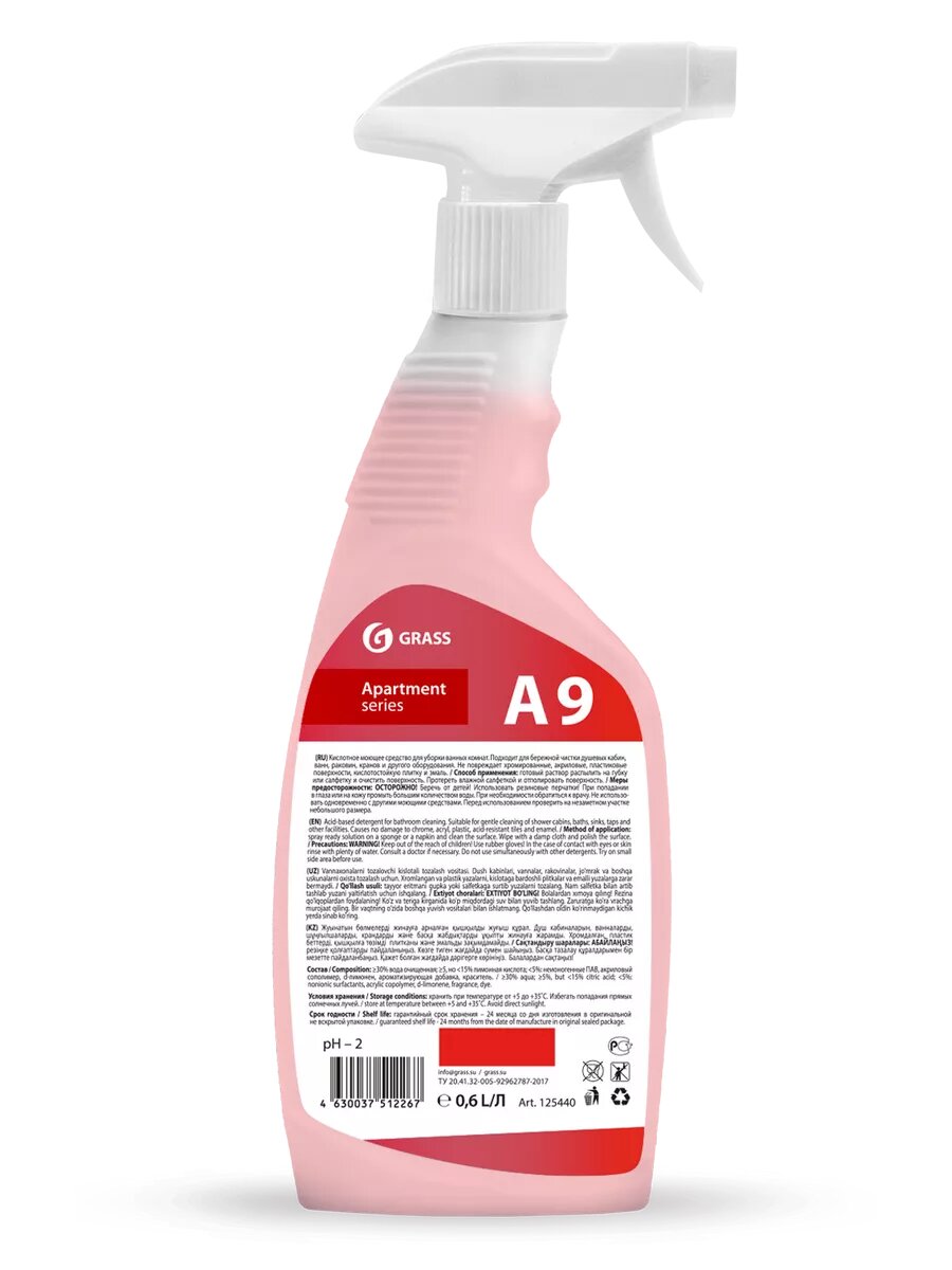 Купить Средство Моющее Grass Apartament Series А9 Кислотное Для Уборки Ванных Комнат Триггер 0,6 Л GraSS арт. 125440