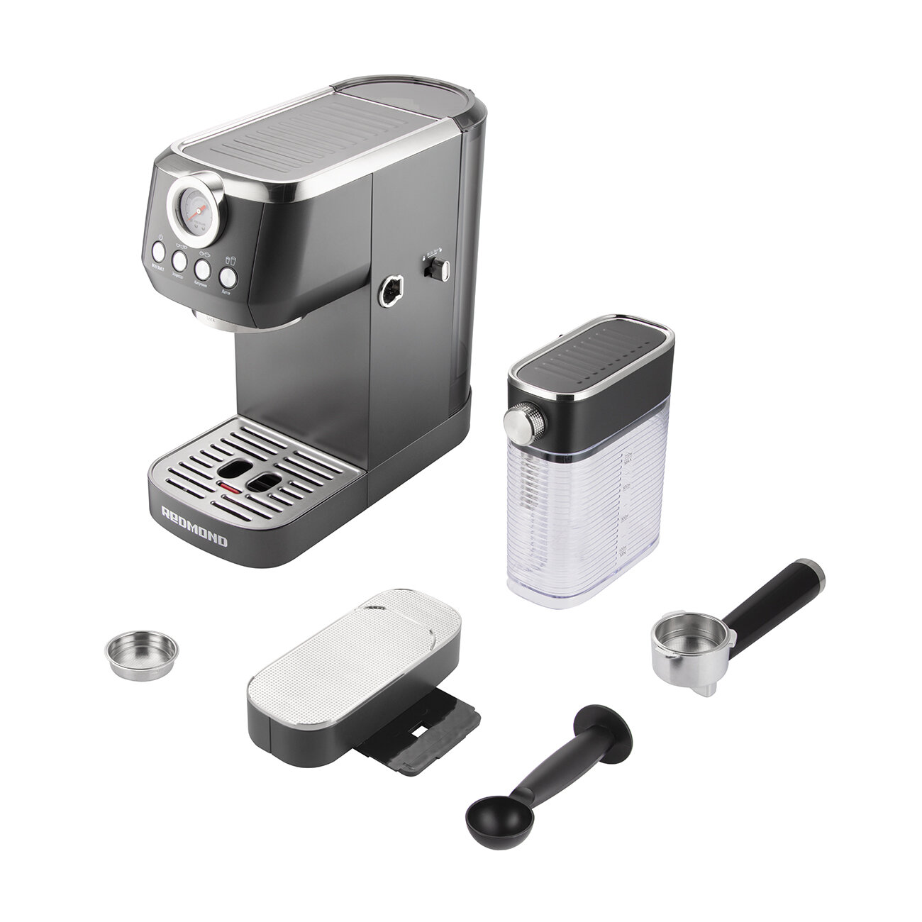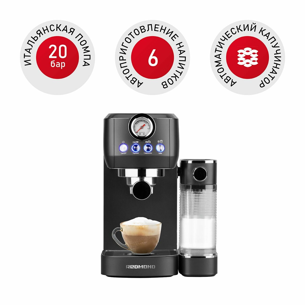 Рожковая кофеварка REDMOND СМ711, с капучинатором, цельнометаллический корпус