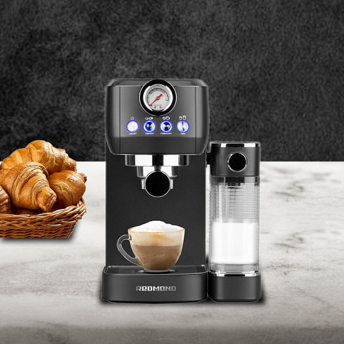 Рожковая кофеварка REDMOND СМ711, с капучинатором, цельнометаллический корпус