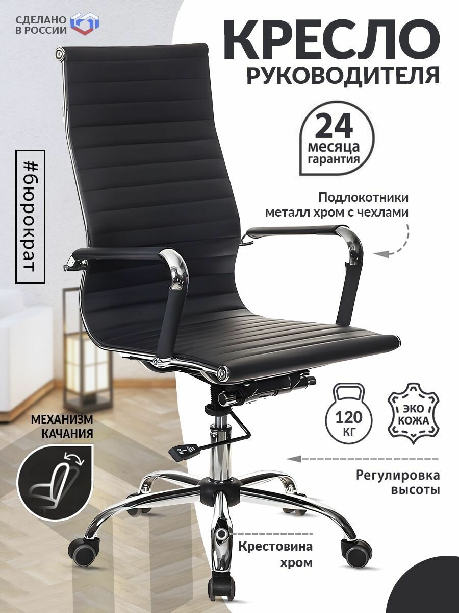 Кресло руководителя бюрократ CH-883 черный искусственная кожа крестовина металл хром [CH-883/BLACK]