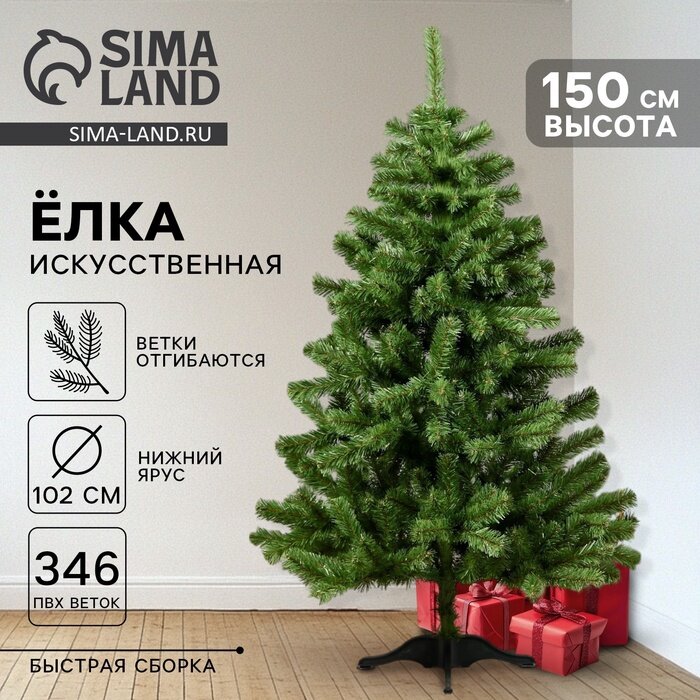 Купить Ель искусственная "Лесная" 150 см, d нижнего яруса 115 см, 340 веток, "Елкиторг", цвет зелёный, материал пвх