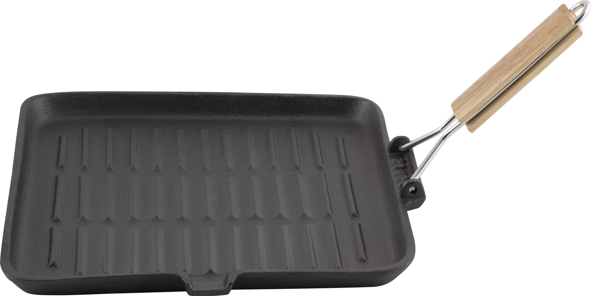 Сковорода-гриль чугунная с дерев складной ручкой, квадратной формы, PADELLA, 28*28 см