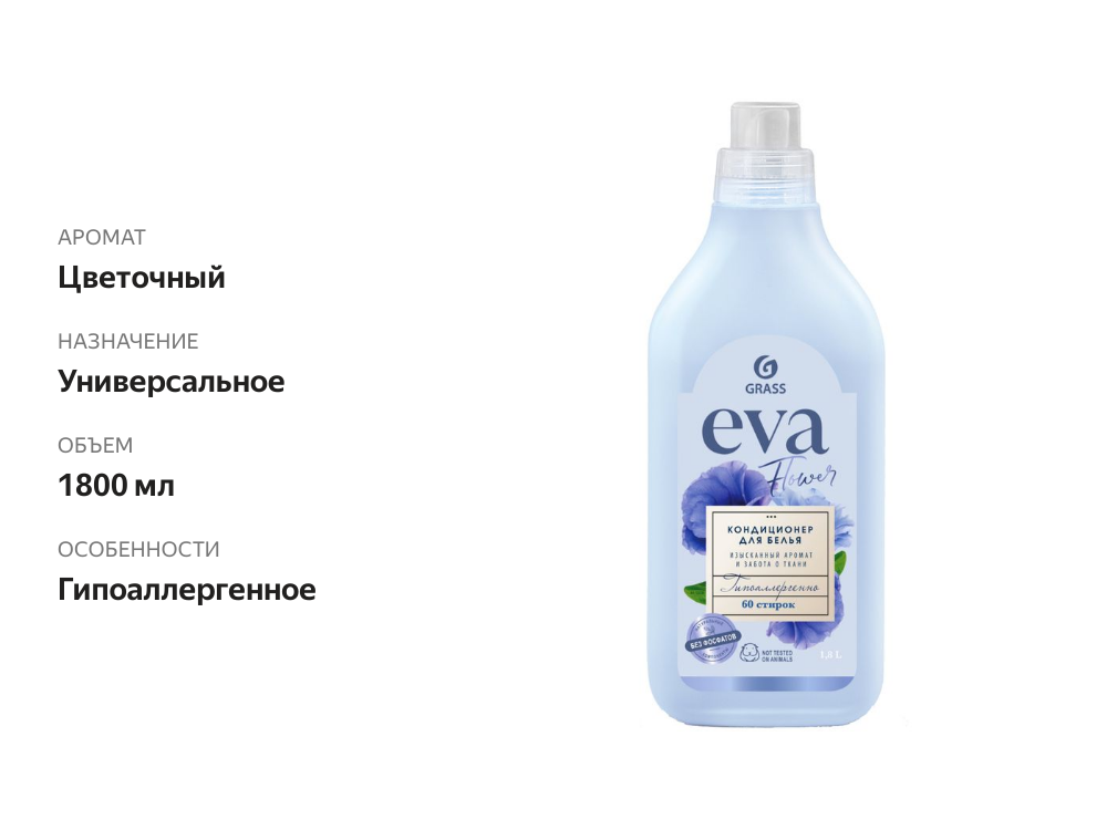 Гипоаллергенный кондиционер ополаскиватель для белья Grass Eva 1,8л/60 стирок