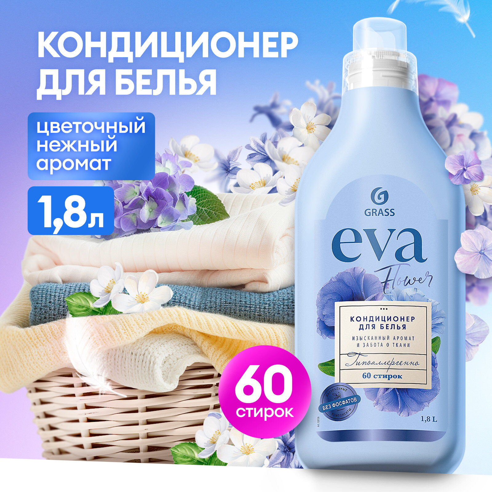Grass Кондиционер для белья "EVA" flower концентрированный 1800мл/