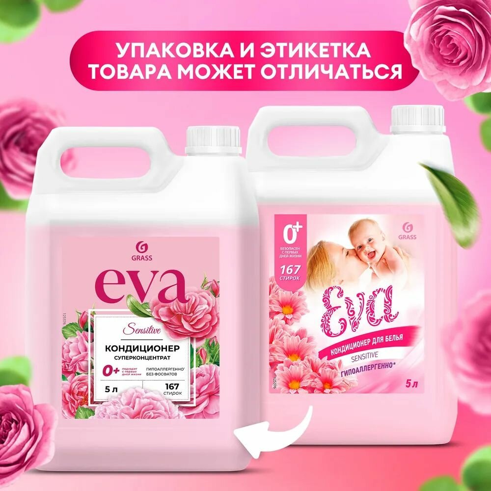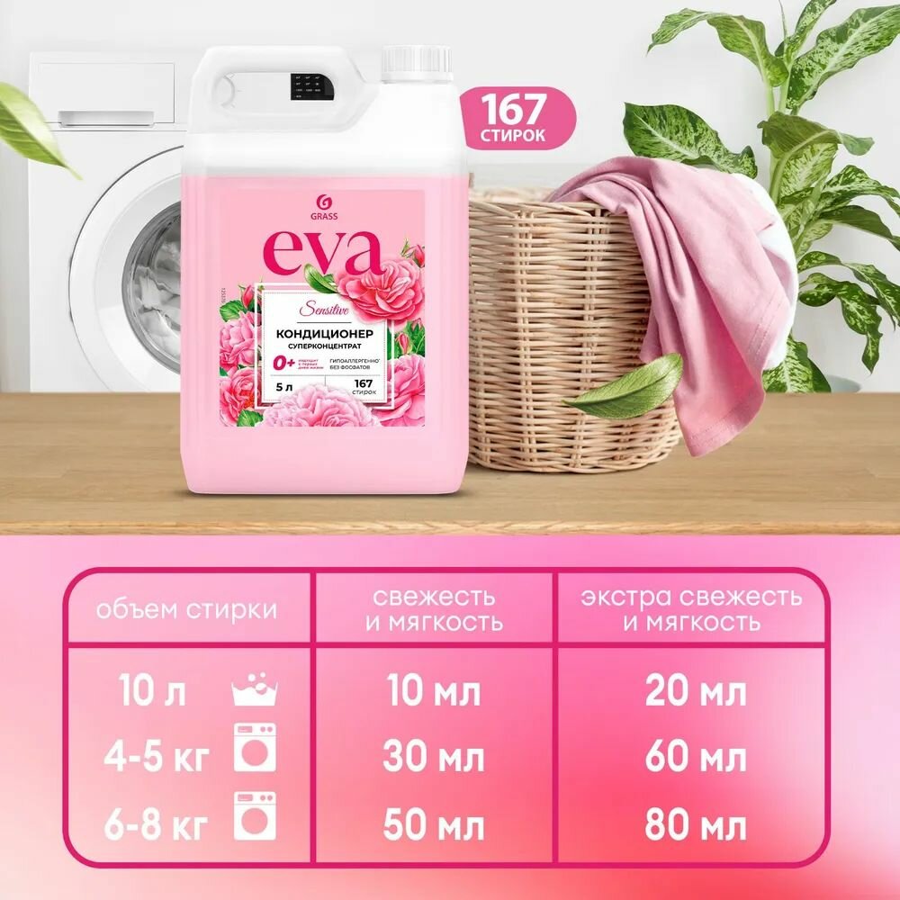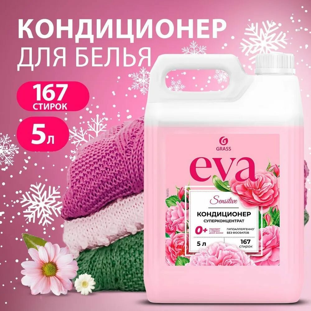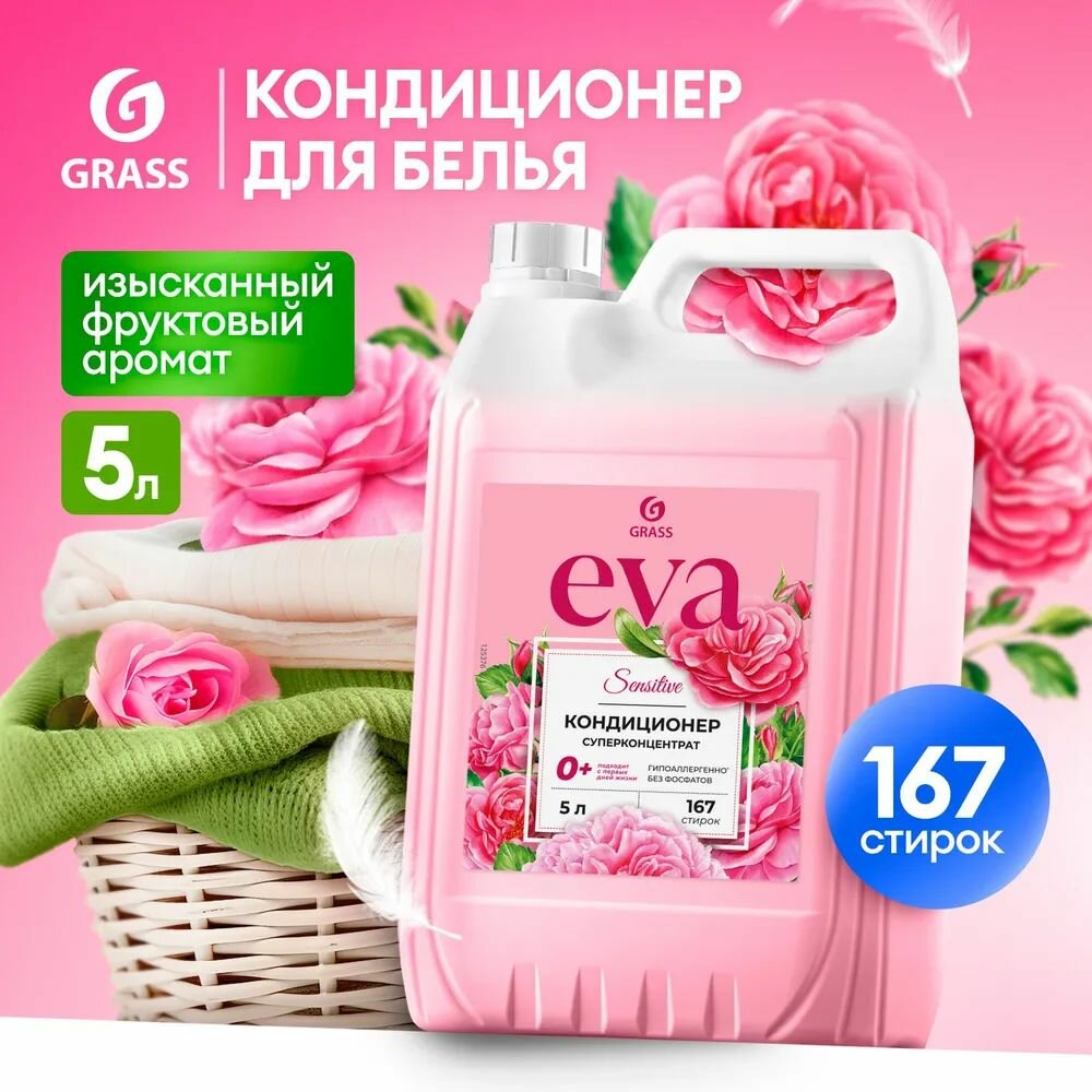 Купить Кондиционер - ополаскиватель для белья универсальный GRASS Eva SENSITIVE 5л,167 стирок, гипоаллергенный концентрат со свежим ароматом