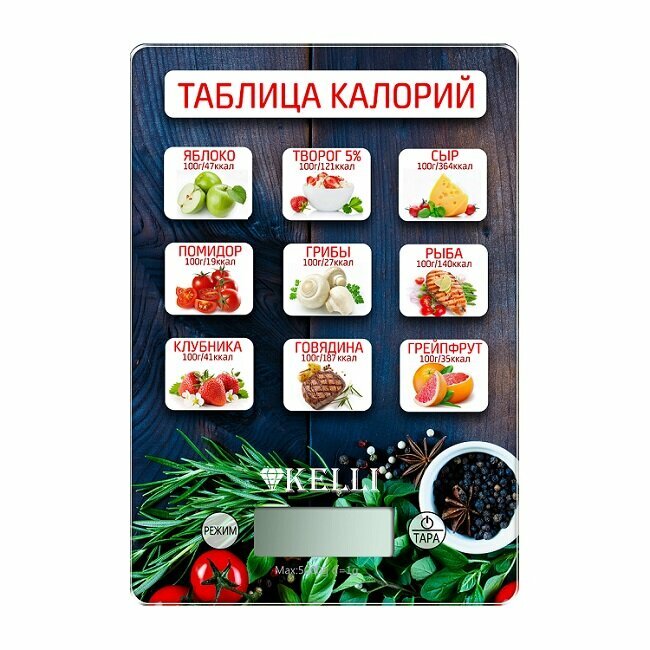 Весы электронные кухонные Kelli 1543 , 5кг "Таблица колорий"