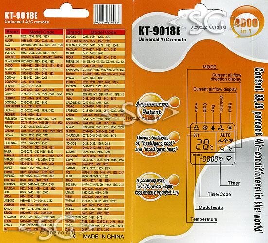 Пульт универсальный QUNDA KT-9018E для кондиционера 4000 в 1 инструкция на русском языке