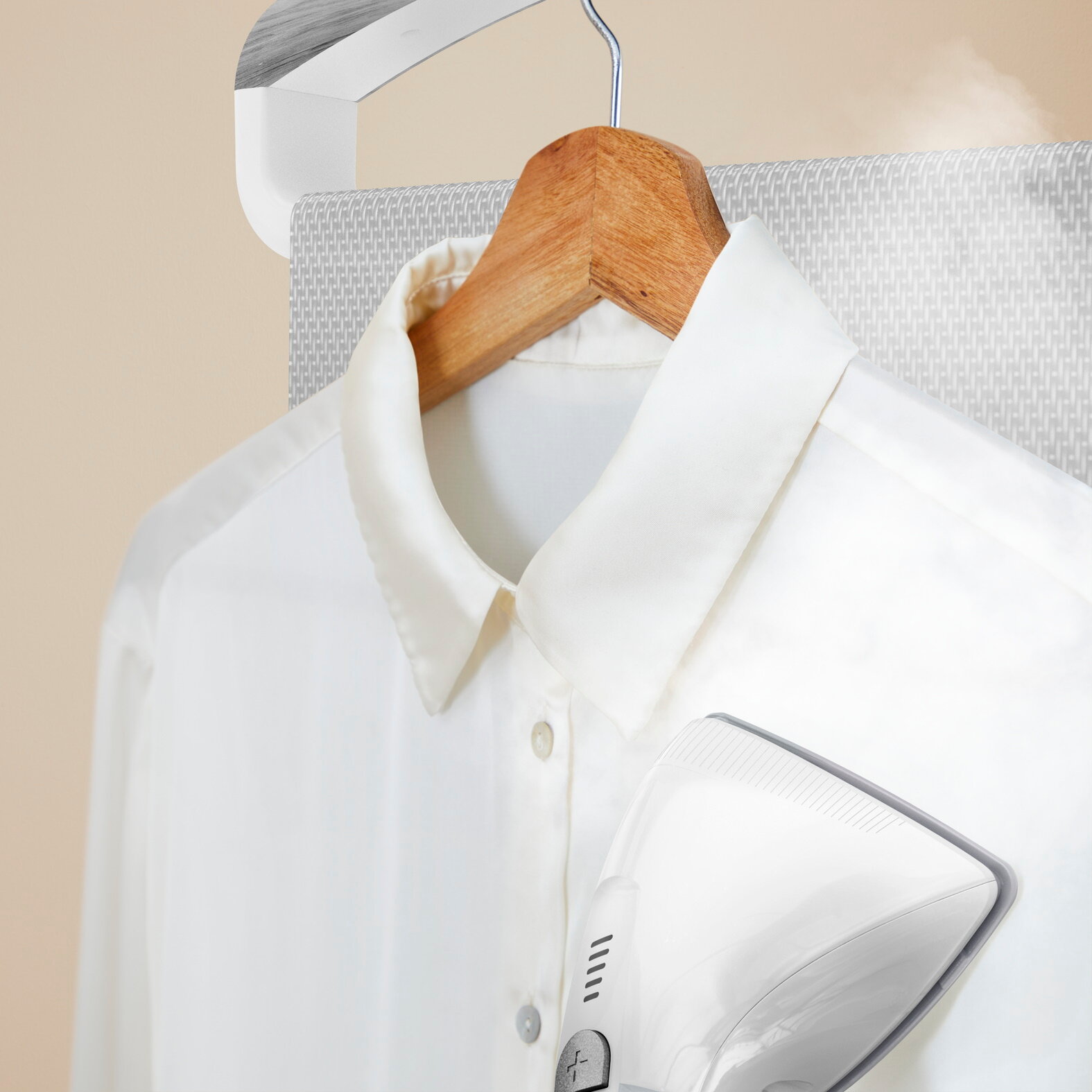 | Отзыв: | Пар даже на "максимальном" (всего их три) режиме идет не то чтобы очень резво. Возьмёт только самые тонкие ткани. Не самая удобная конструкция вешалки (возможно, лишь для моих размеров одежды) - довольно массивная вешалка, вещи с узким вороником не натянуть, хлипонькие, практически не держащие держатели для брюк. Т.к. высока площадь соприкосновения вешалки и одежды - при долгой обработке (а он понадобится, т.к., опять же, подача пара не ахти) можете получить насквозь мокрые от конденсата плечи, соответственно сразу же вещь не одеть.