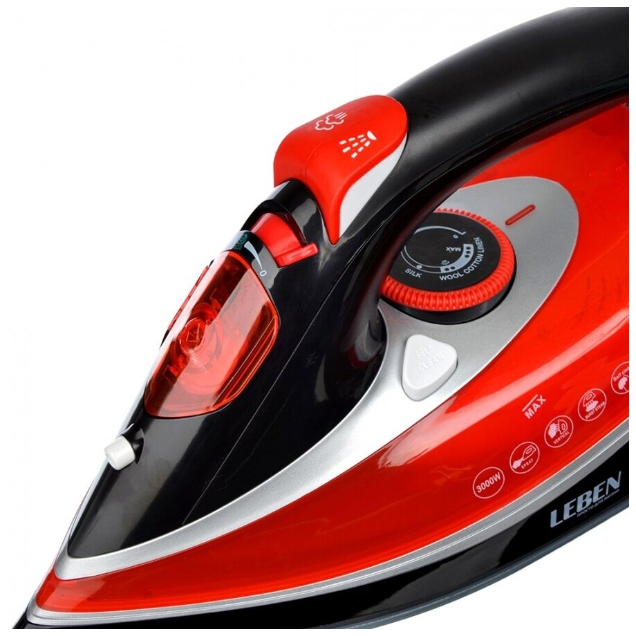 Утюг LEBEN 3000 Вт, подошва керамика, красный/черный 249-012
