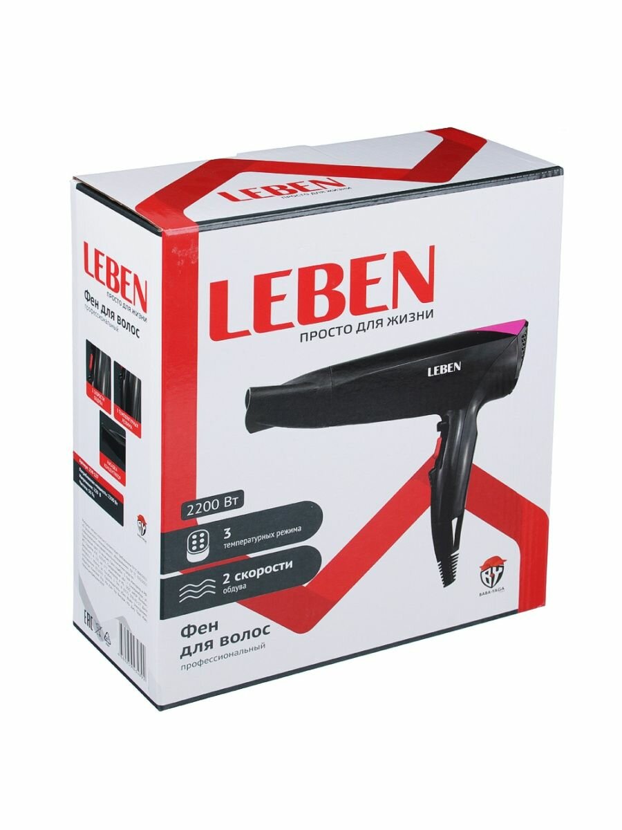 Фен для волос профессиональный 2200 Вт, 2 скорости, 3 температурных режима HT-1805 LEBEN интересное: