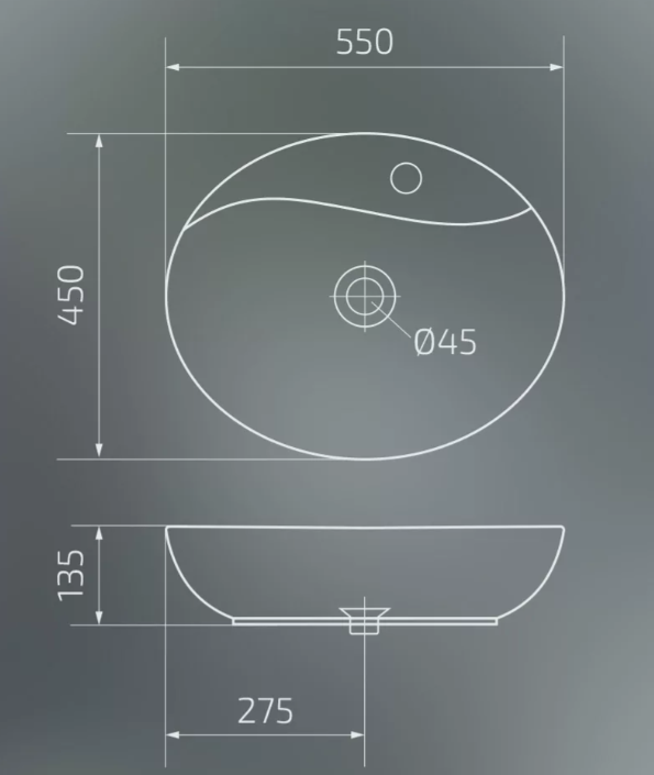 Накладная раковина 55x45x13.5 см, Gid, N9088