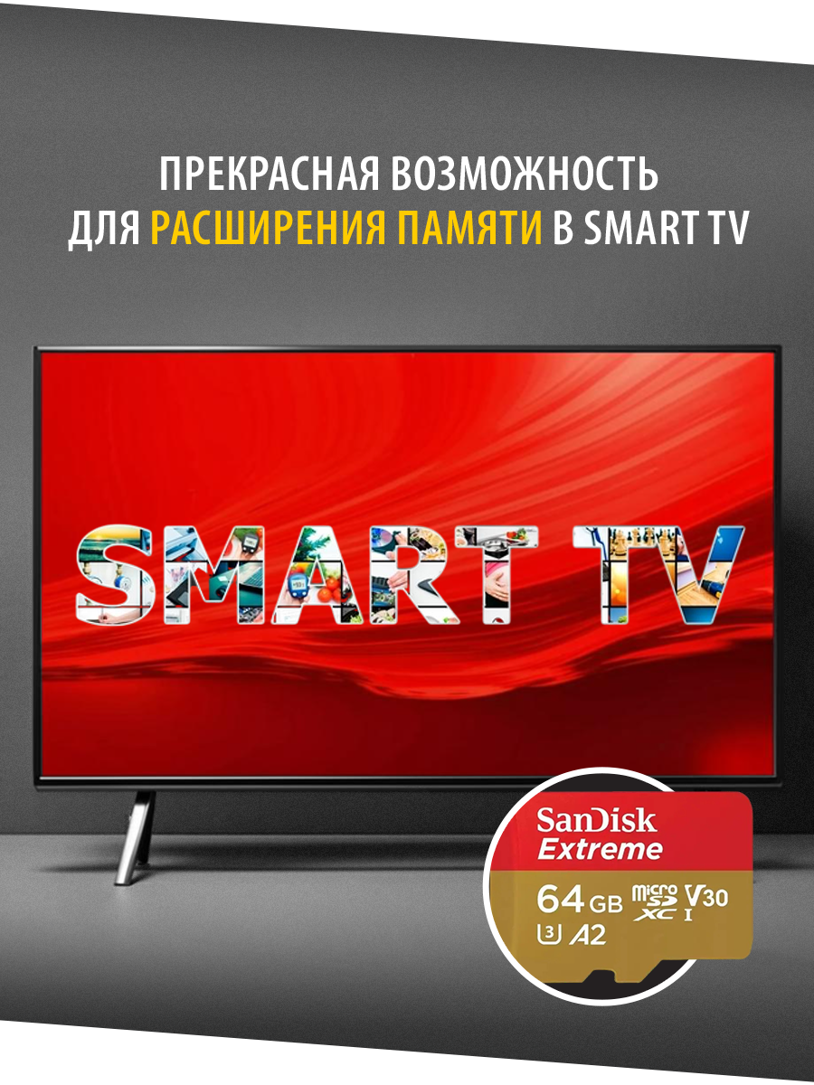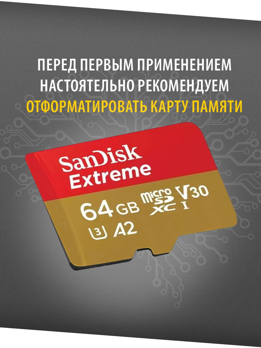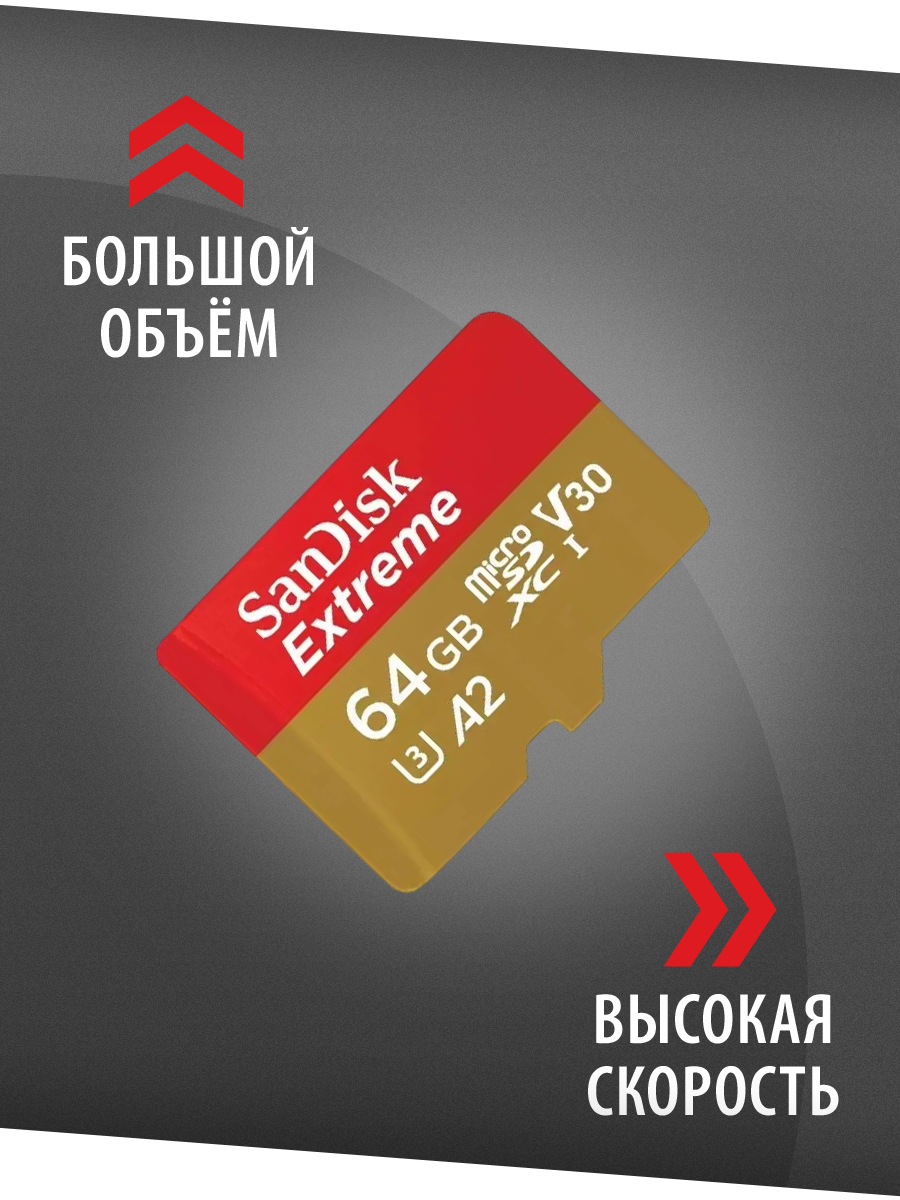 Карта памяти SanDisk Extreme microSDXC 64 Гб V30, UHS-I Class 3 (U3), Class 10 (SDSQXA2-064G-GN6MA)