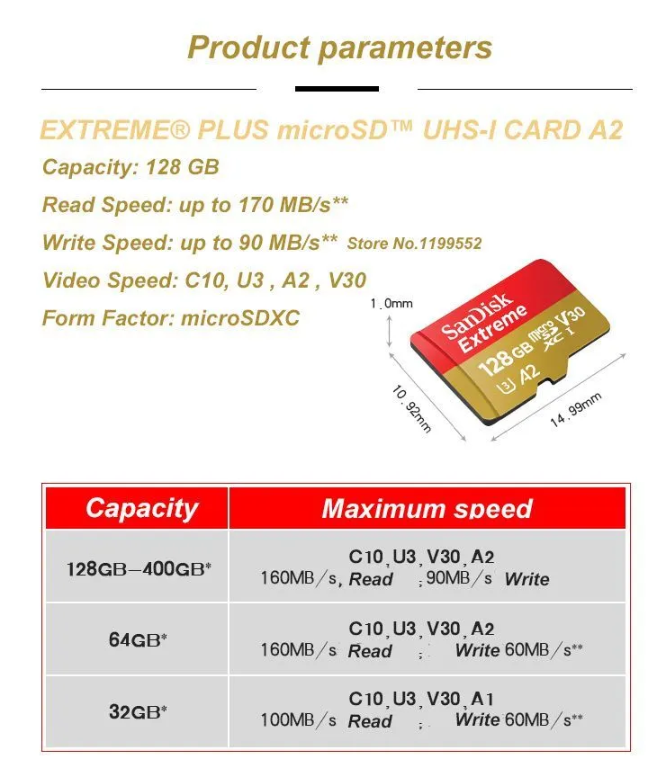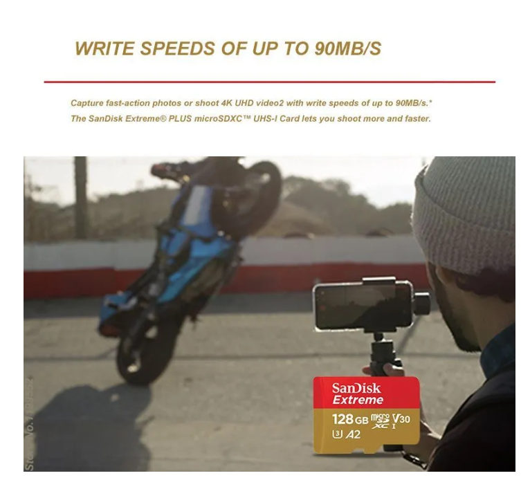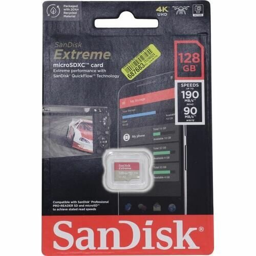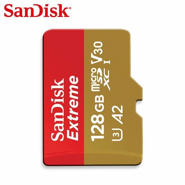 Карта памяти SanDisk Extreme microSDXC 128 ГБ Class 10, V30, A2, UHS Class 3, R/W 190/90 МБ/с