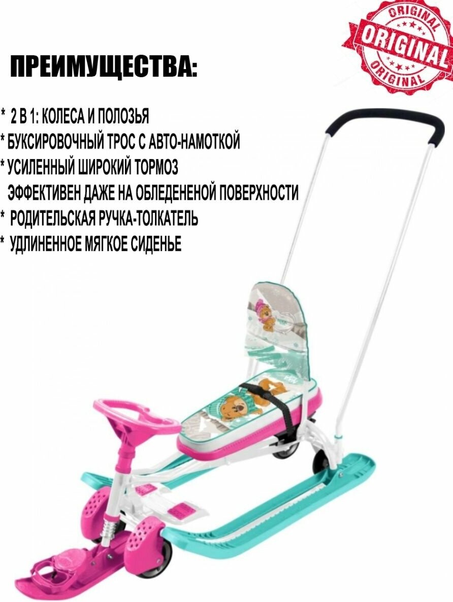 Снегокат для детей с выдвижными колёсами, родительской ручкой, Nika, ТС6-М/К