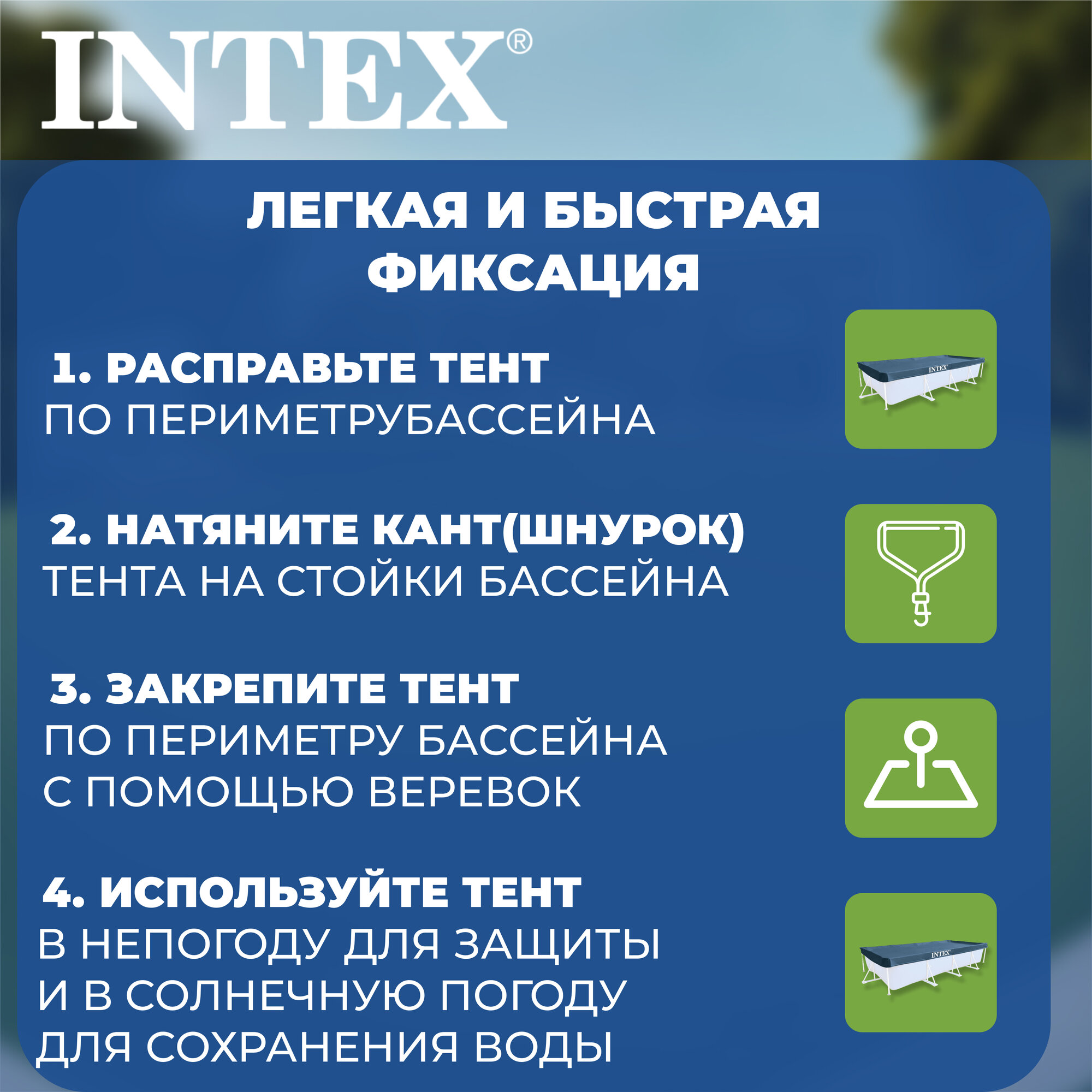 INTEX Тент на прямоугольный каркасный бассейн 460 х 226 см, 28039 INTEX