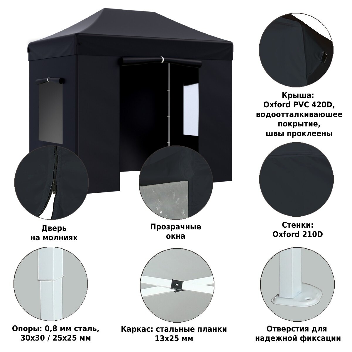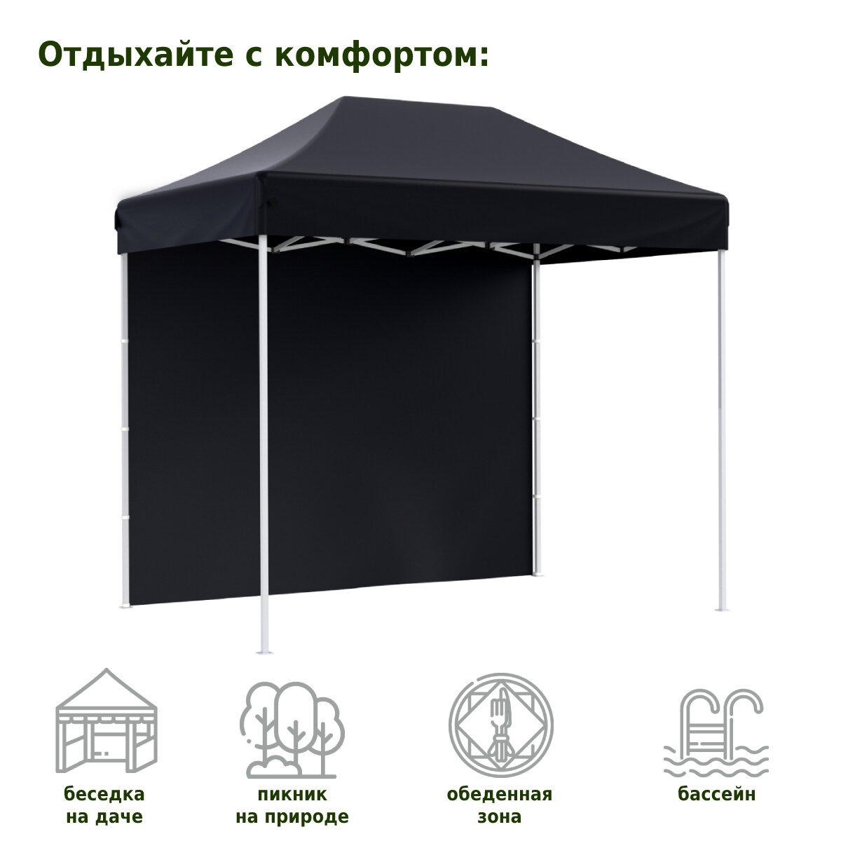 Тент садовый Helex быстросборный с боковыми стенками 6 кв. м черный 4322