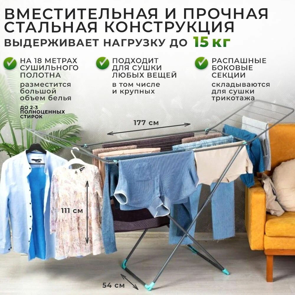Складная сушилка для белья напольная 177 см х 53,5 см х 109 см толстые прутья