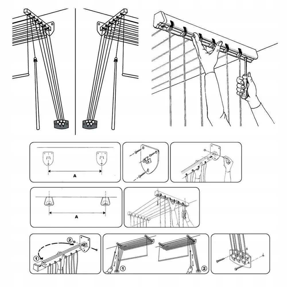| Плюсы: | Данная сушилка не мешается, удобно вешается бельё, не мешается при хранение. Крепить можно как к стене так и к потолку |