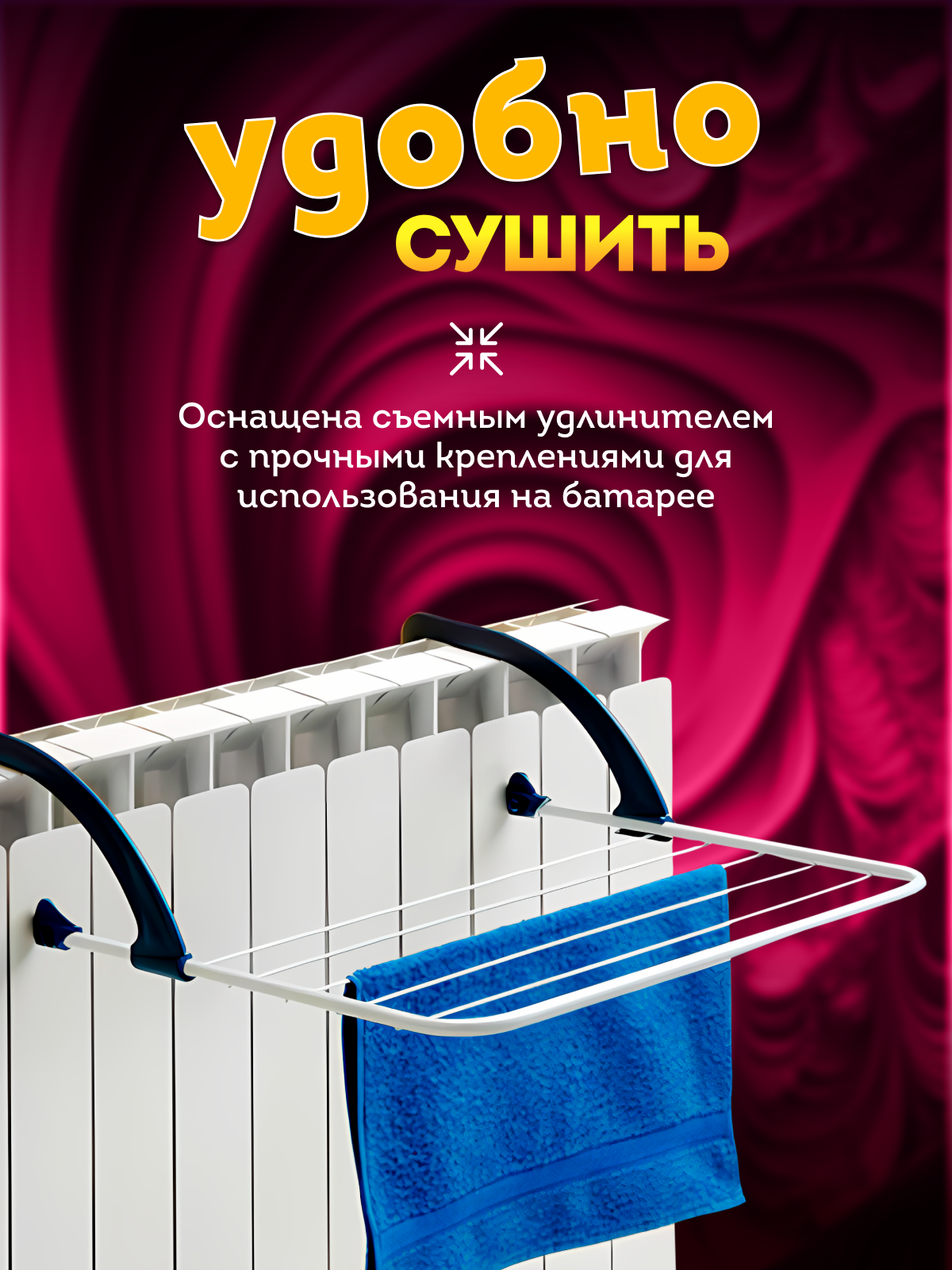 | Отзыв: | Сушилка большая, вместительная, качественная и абсолютно устойчивая. Купила, т.к. хотела съёмное крыло повесить на батарею. Однако на мою комнатную батарею современного типа из семи секций, крыло не очень хорошо садится (у него слишком длинные боковые трубки), вероятно сядет на 6-секционную батарею. Я могу вешать съёмное крыло только на полотенцесушитель в ванной. |