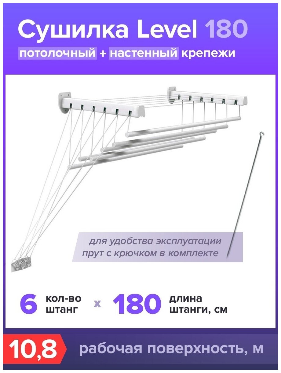 Violet Сушилка потолочно-настенная "Level 180" 10,8м 33180 .