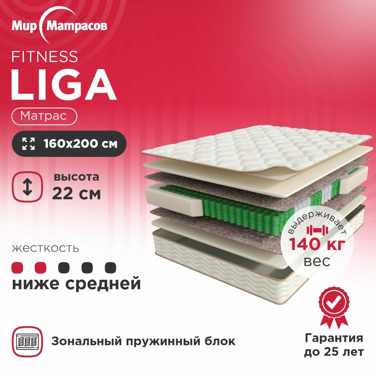 Купить Анатомический, Ортопедический матрас Fitness Liga, с зональным пружинным блоком 160х200 см