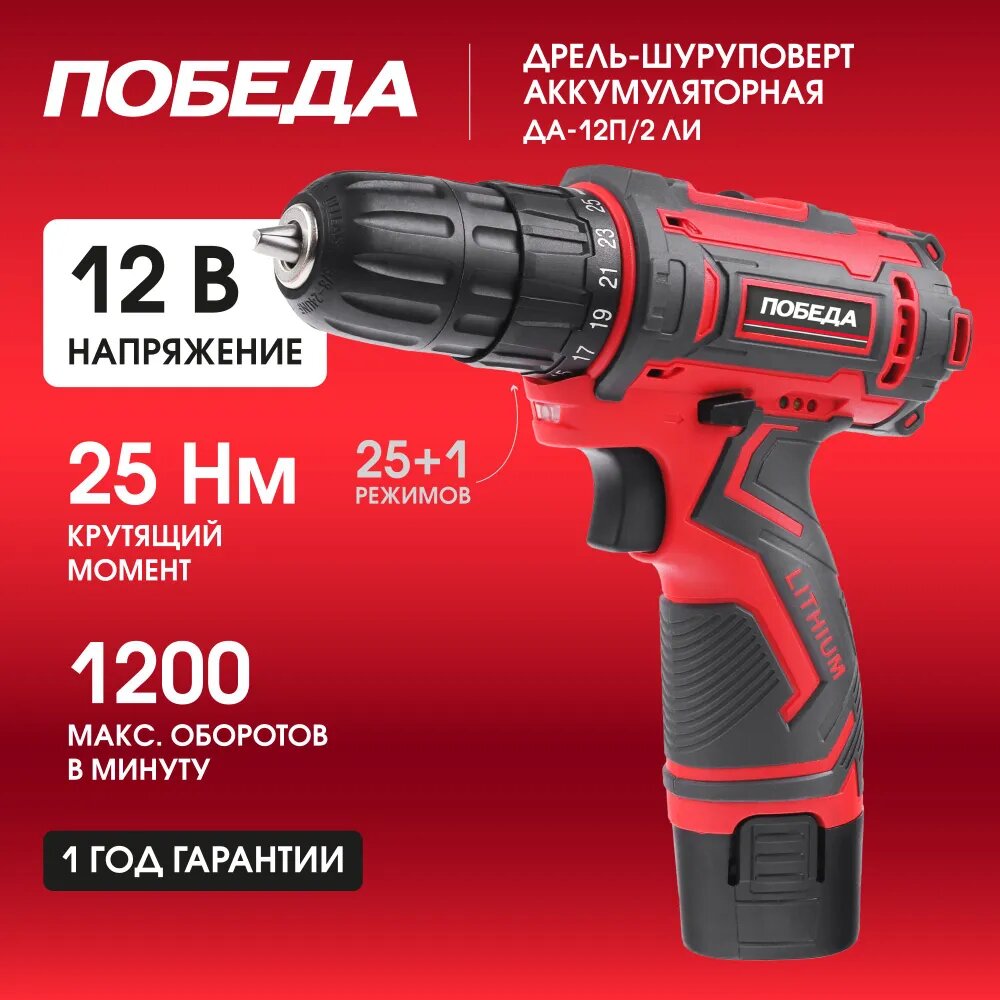Аккумуляторная дрель-шуруповерт Победа ДА-12П/2 Ли