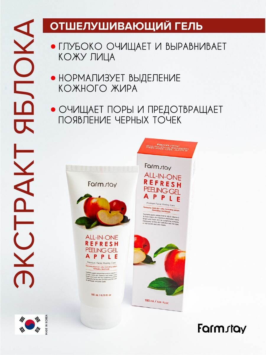 Купить FarmStay All In One Refresh Peeling Gel Apple Отшелушивающий гель с экстрактом яблока, выравнивающий тон кожи, 180мл, Корея