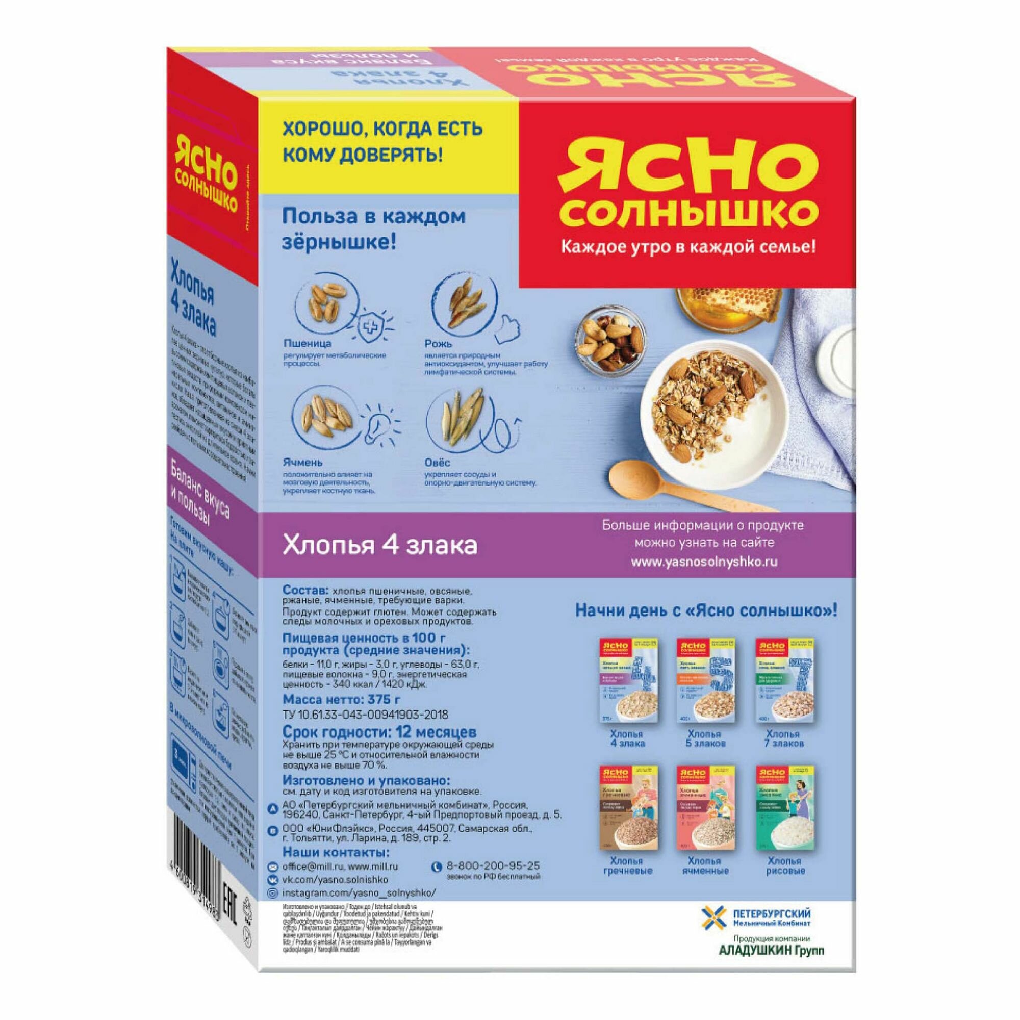 Ясно солнышко Хлопья 4 злака 375 г интересное: