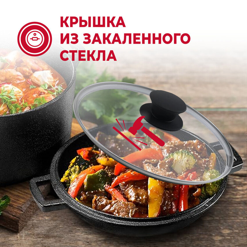 Купить Чугунная сковорода, со стеклянной крышкой 26 см, с толстым дном для индукционных плит, мангала Oberhof Bratpfanne LP-13/1