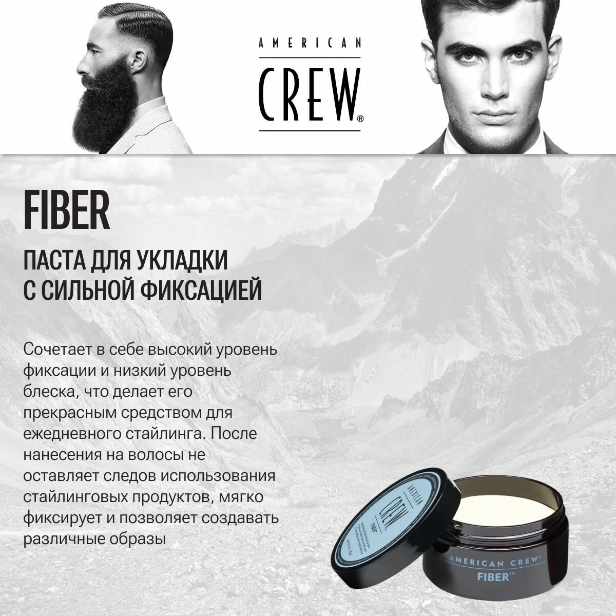 AMERICAN CREW Паста для укладки усов с низким уровнем блеска, для мужчин / FIBER 85 мл