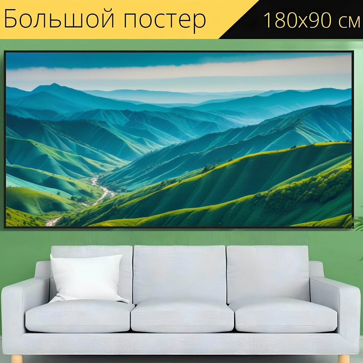Большой постер "Пейзаж с дорогой акварелью , " 180 x 90 см. для интерьера на стену интересное: