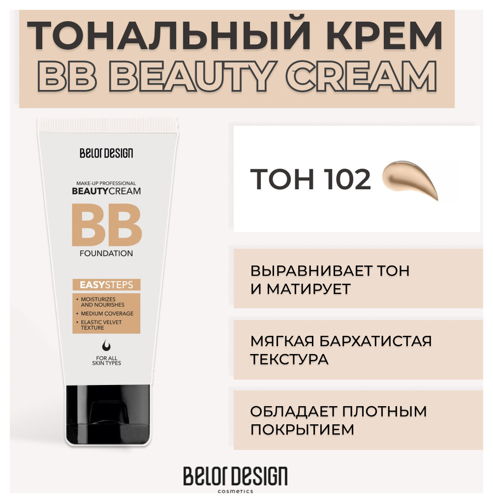 BELOR DESIGN, BB BEAUTY CREAM, Крем тональный, тон №102, 32 г